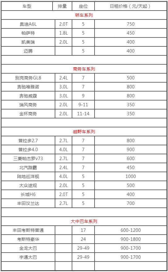 成都租車價格表